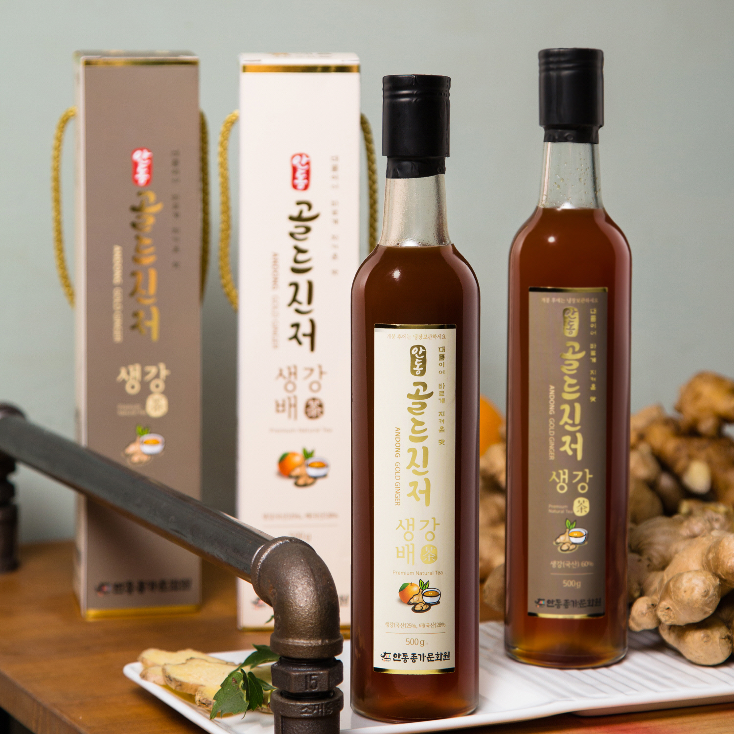 안동종가문화원의 생강 제품은 안동시 특산품입니다. 지역 농산물인 안동 생강만을 엄선해 사용함으로써 품질 좋은 제품을 생산하기 위해 노력하고 있습니다. 생강을 착즙해 화학 첨가물 없이 다려내는 방법으로 제품을 생산함으로써 생강 고유의 깊은 맛과 향을 보존합니다.